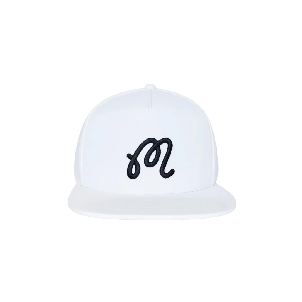 Malbon M Snapback Cap. The M Snapback features embroidered branding and is the final touch for sun protection on and off the greens.
