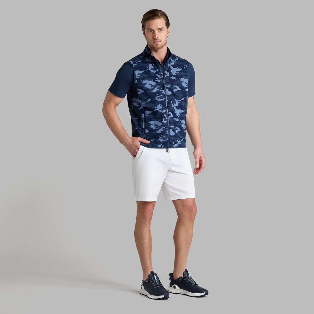 MADE WITH DOUBLE KNIT ELITE TECH AND DESIGNED WITH OUR FAN-FAVOURITE CAMO PRINT, THIS GILET IS EXCEPTIONAL AT KEEPING YOU WARM AND COMFORTABLE, NO MATTER WHERE YOU ARE. WIND REPELLENT AND DESIGNED WITH BI-STRETCH, LAYER IT OVER A LONG SLEEVE TEE OR JUMPER WHEN THE BREEZE CHANGES.