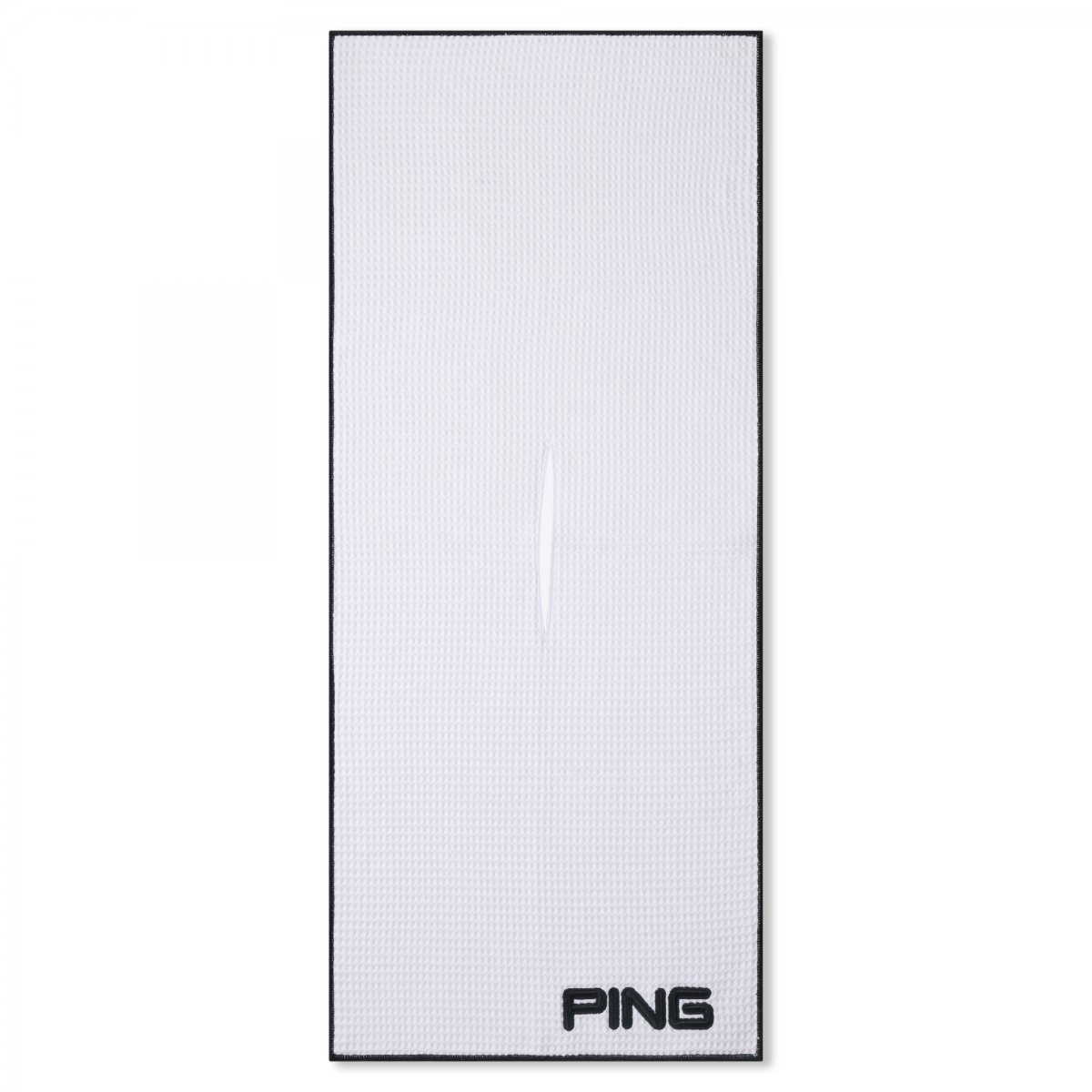 The Ping Tour Towel has been redesigned and updated to meet the demands of Ping Golf Tour Pros and weekend golfers alike. The large 100 x 33cm unfolded design features a centre slit that lets you easily hang the towel over tour clubs in your bag keeping it within reach during play. The super absorbent waffle design microfibre material offers effortless club cleaning and an embroidered Ping logo offers a tour of tour inspired style.