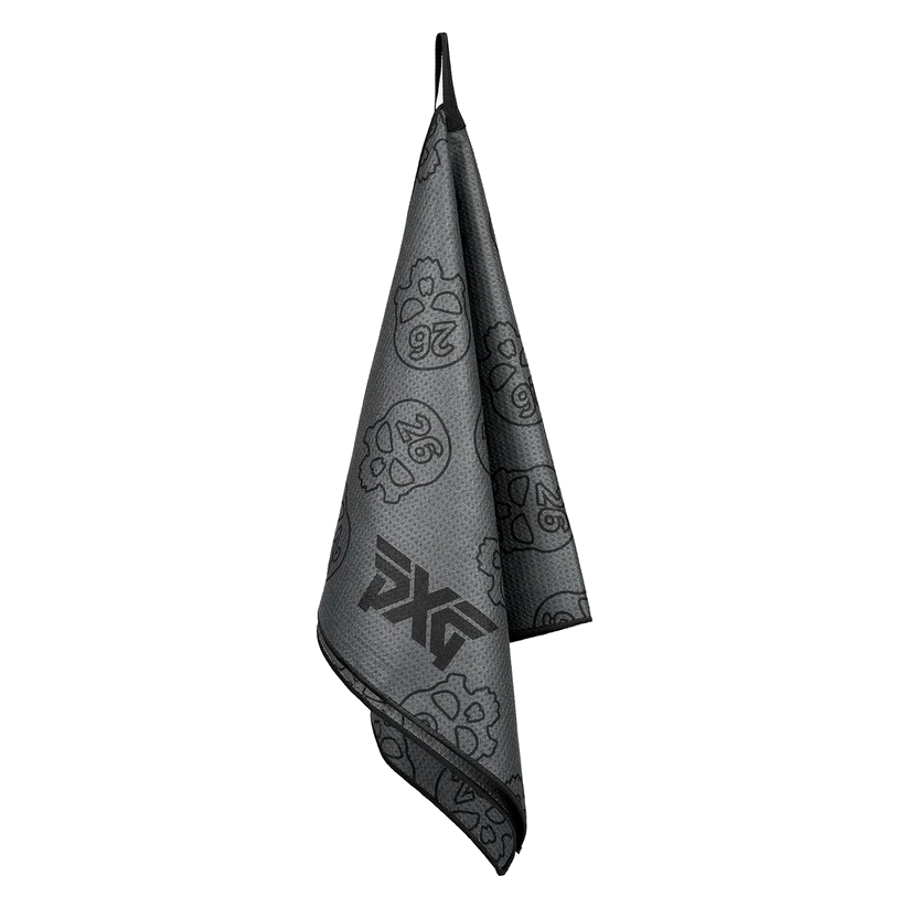 Our Darkness Repeat Player’s Towel brings fierce style to your golf bag. Patterned in our repeating Darkness Skull insignia on both sides, the microfiber waffle weave material will keep your clubs shiny and clean throughout your round. It features PXG logos on each end along with a woven loop to secure it to your bag.