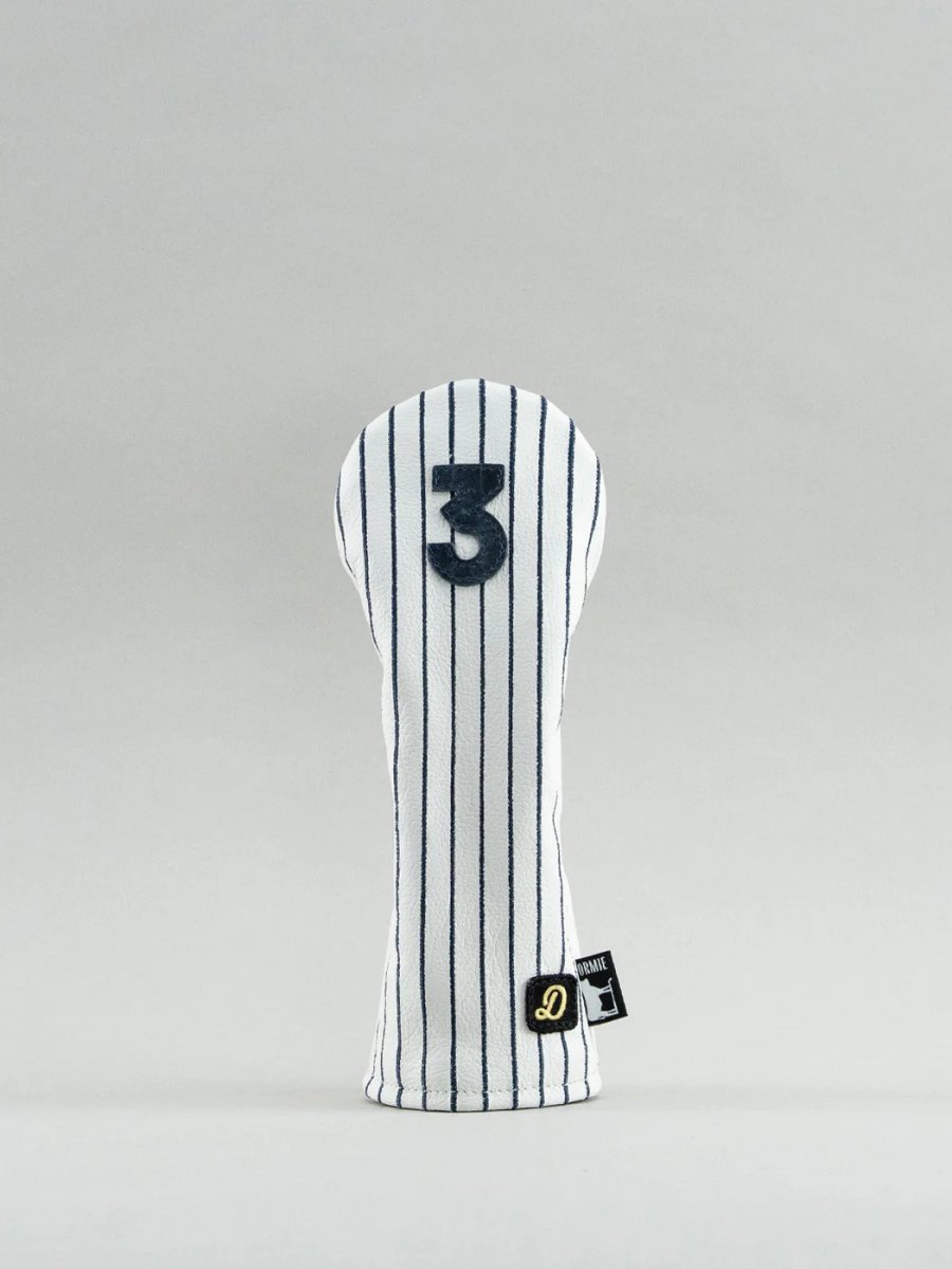 Made from premium Italian full-grain leather, this cover features a crisp white base with deep navy pinstripes—an unmistakable nod to the most iconic uniforms in the sport. We finished each one with a navy leather appliqué identifier, available in a 3 or 5, stitched with the same care you’d expect on the back of a jersey.