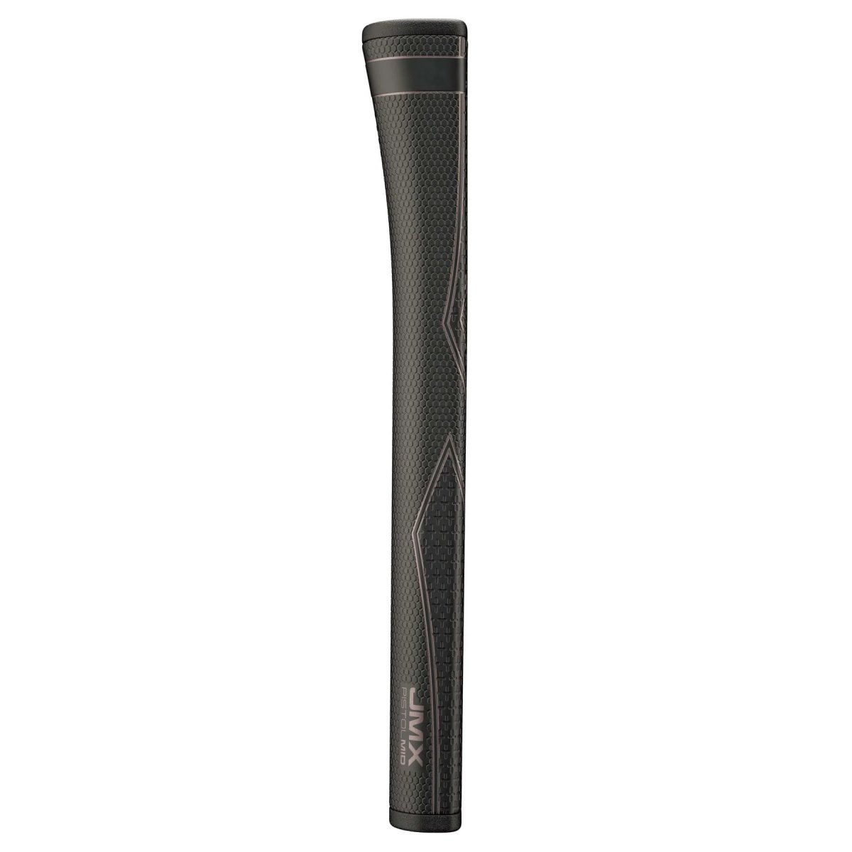 JMX Pistol is inspired by our award-winning JMX UltraLite™ swing grips. It uses the same lightweight construction to reduce grip weight by 50% compared to traditional rubber-based pistol grips. With our Tri-Texture™ Poly-Tour™ outer and our Twist-Resistant StabilityCore™, JMX Pistol delivers the signature feel of JMX UltraLite™ in a new pistol shape that makes it easy to lighten up on the greens. JMX Pistol seamlessly blends the best aspects of pistol-style and straight-style putter grips. Its tapered upper-hand section adds stability to your upper hand, while its straighter bottom section reduces grip pressure. Both our smaller PRO size and larger MID size offer the crisp edges and easy hand placement pistol players demand. A “reminder” rib on the back of the grip provides additional feedback.